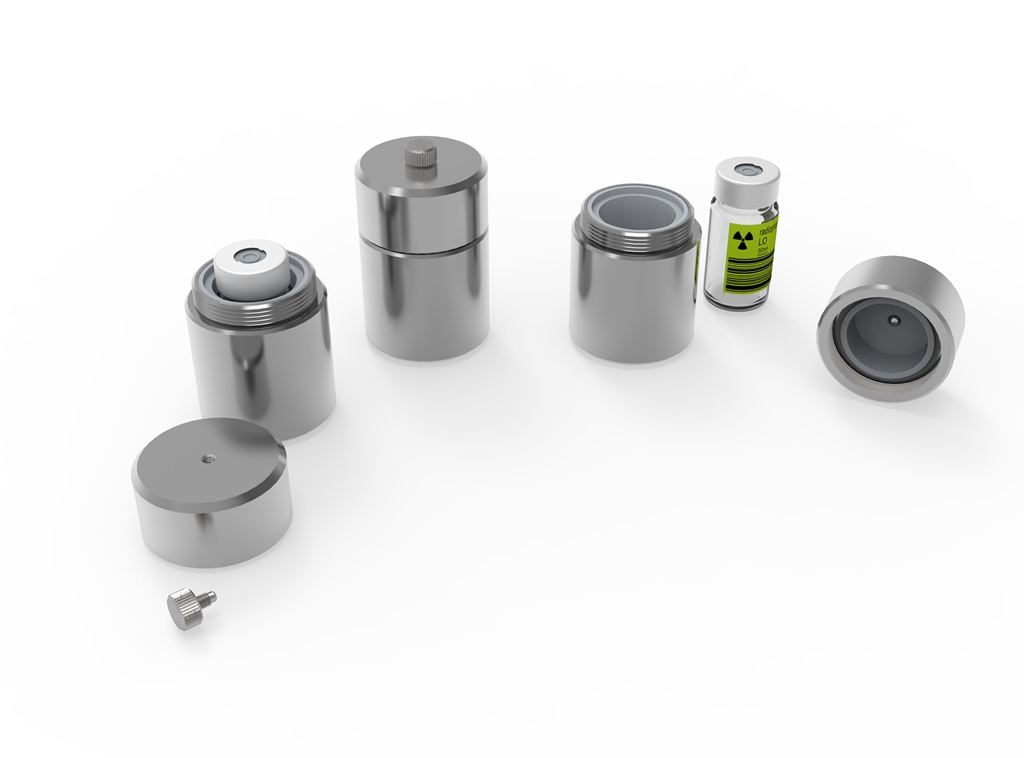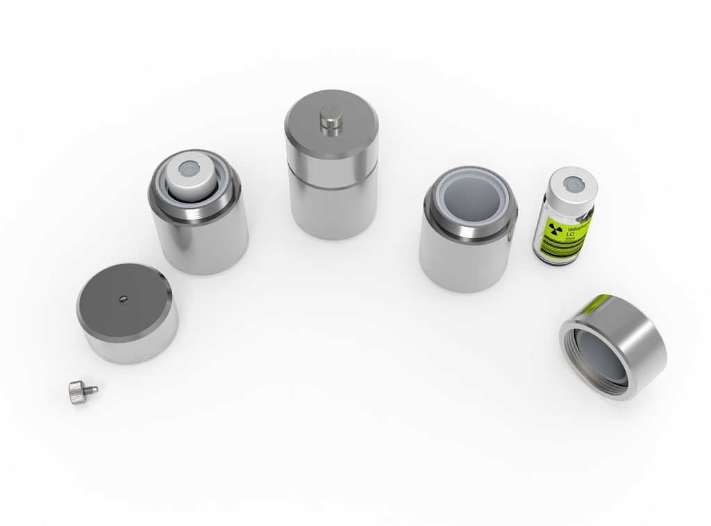Контейнер защитный TISSA-RP TMRP-03.02.16 предназначен для временного хранения флаконов с радиофармпрепаратом (РФП). В крышке контейнера предусмотрено отверстие для доступа к флакону с РФП.
