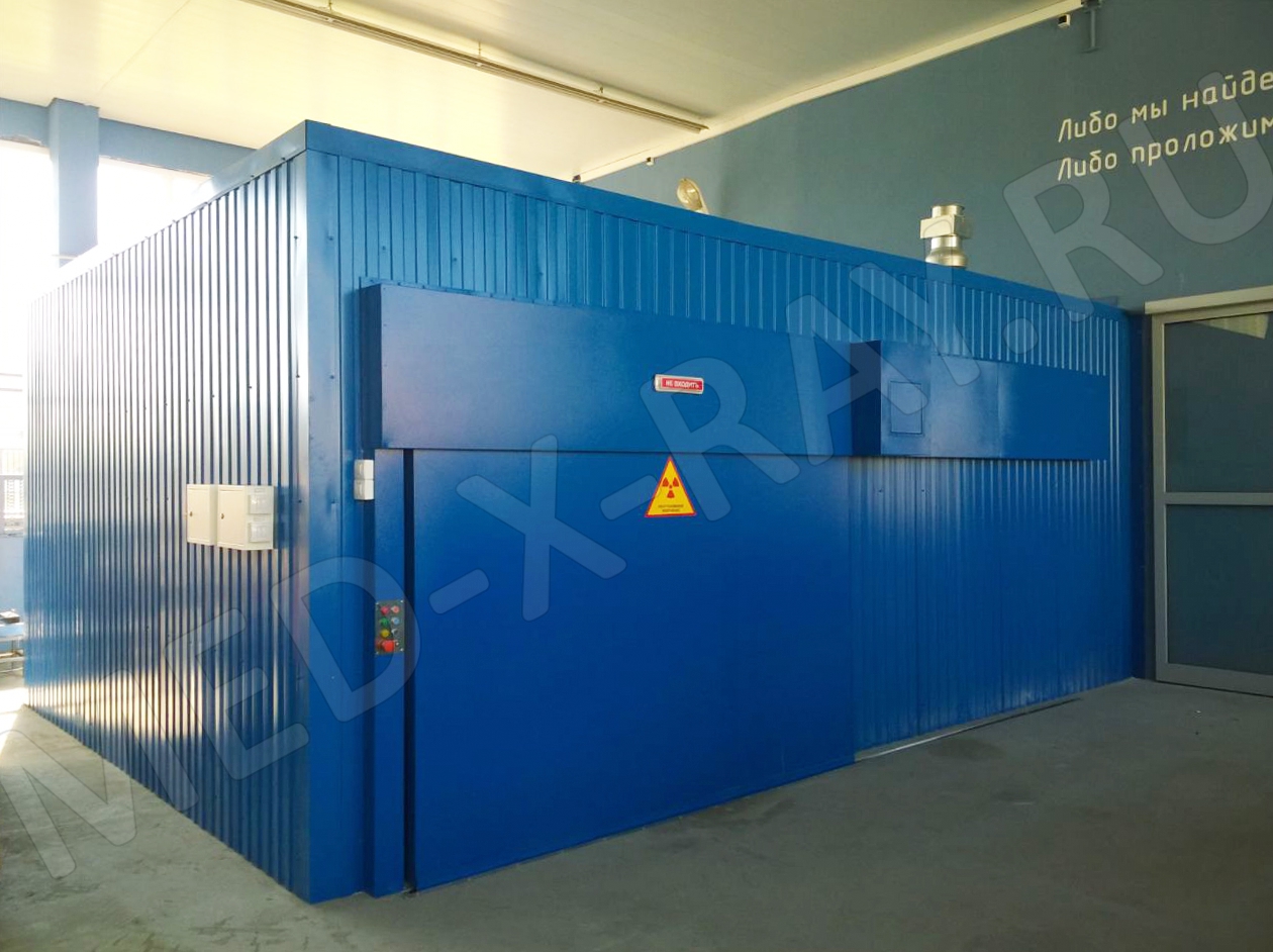 Камеры рентгенозащитные предназначены для размещения в них систем рентгеноскопического контроля и высокочувствительного рентгентелевизионного оборудования. Конструкция камеры представляет собой стационарные защитные экраны, собираемые на объекте с отделкой (или без) стеновыми панелями.